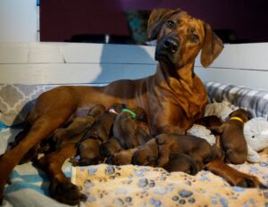 We are thrilled to announce that on 14.04 2023 we have just welcomed 9 home bred, healthy, strong, standard puppies. The babies come from a long standing friendship between Cori and Simba as well as their carers. RhodesianRidgeback kennel world has been enhanced by new excellent genes – introduced thanks to Simba and his brilliant … Litter "M" Read More